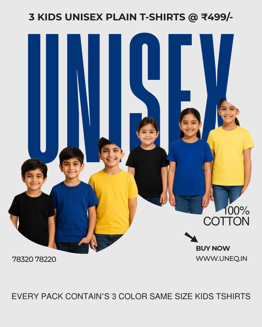PERFECTLY crafted for all-day comfort and durability. EVERY PACK CONTAIN’S 3 COLOR SAME SIZE KIDS TSHIRTS