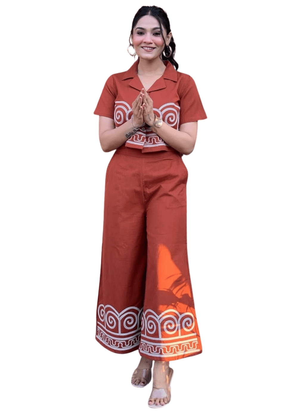 Elevate your everyday style with this cotton slub Indo-Western 2-piece set featuring a modern kurta top paired with matching pants. The breathable cotton fabric ensures all-day comfort, while the design blends Western chic with Indian elegance. Perfect for office wear, casual outings, or festive gatherings, this versatile outfit brings effortless charm to your wardrobe.