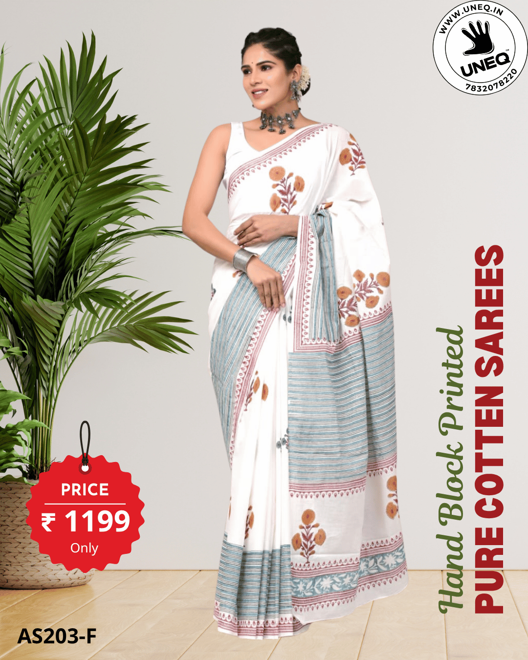 Be the first to review “Hand Block Printed 100% Pure Cotton Mulmul Saree with Blouse -AS203F (Free Shipping)”